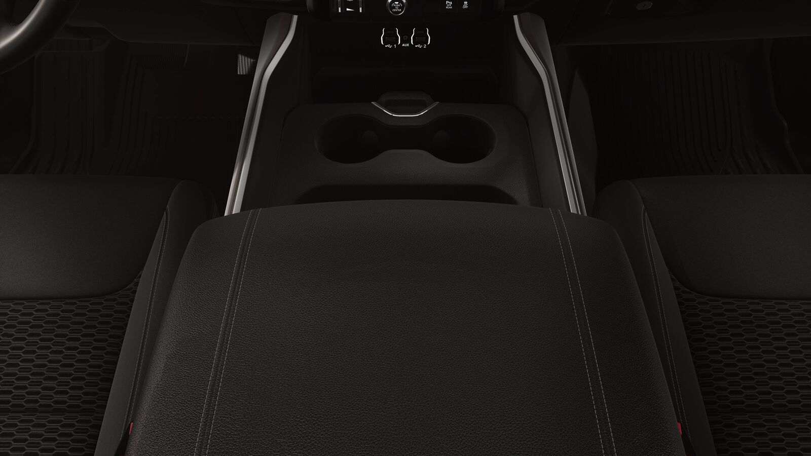 Full Floor Console w/Covered Storage Mini Overhead Console w/Storage and 1 12V DC Power Outlet