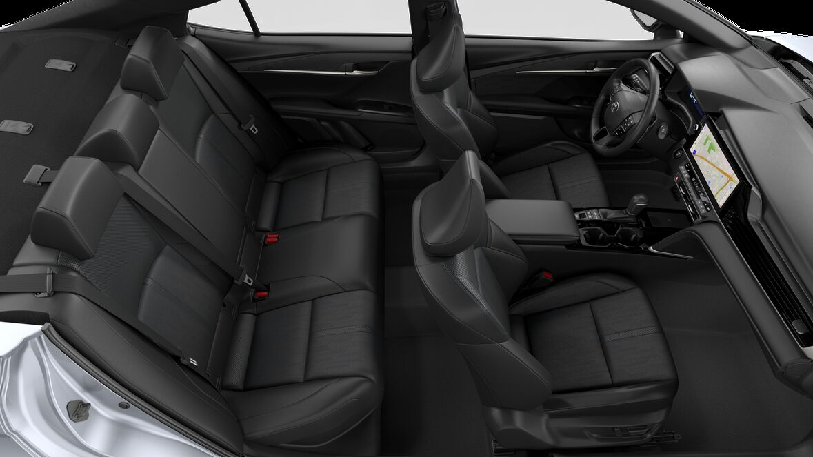 Leather-trimmed front seats with seatback pockets; 8-way power-adjustable front driver's seat with power lumbar support; 8-way power-adjustable passenger front seat