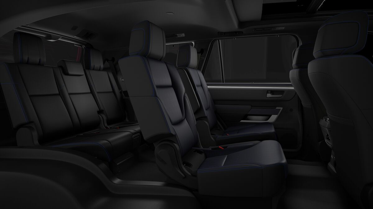 Reclining fold-down fold-up tumble-forward captain's chairs with center armrests on outboard seats; adjustable headrests; one-touch access to third row