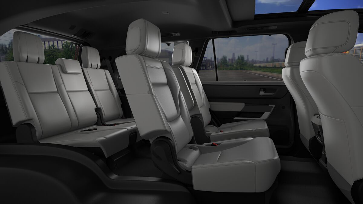 Leather-trimmed 60/40 split sliding power-reclining power fold-down third-row seats with adjustable headrests