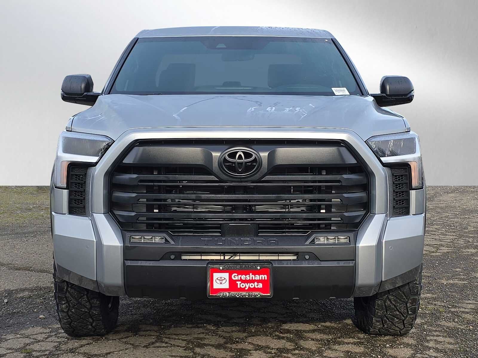 Chrome "TUNDRA" and "SR5" door badges; black door handles window molding mirror caps tailgate spoiler and overfenders