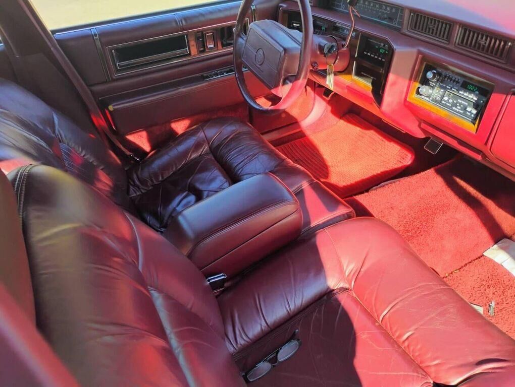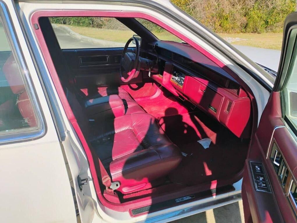 1992 Cadillac DeVille, a timeless embodiment of luxury and performance. This distinguished vehicle boasts a striking white exterior that exudes elegance and sophistication, complemented by a sumptuous red leather interior that offers a rich and invit...