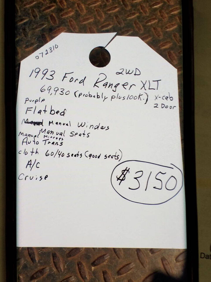 1993 Ford Ranger 3.0L V6 flat bed with 169k miles.This pickup has a flat bed with manual windows, seats and mirrors. Has the automatic transmission and cruise control. The seats are cloth with no tears and also has A/C.Bretz Auto Salvage1862 250th Av...