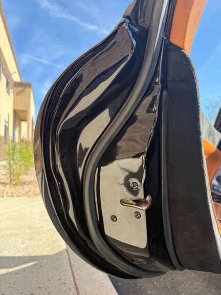 A HOOK ON A HOOD STRIKER FOR THE RESINOUS HOOD MAY SEPARATE FROM A BASE PLATE AT THE WELDED PORTION DUE TO INSUFFICIENT WELDING STRENGTH. THE HOOD MAY SUDDENLY OPEN DURING OPERATION, LOSING FRONT VISIBILITY, POSSIBLY RESULTING IN A VEHICLE CRASH.