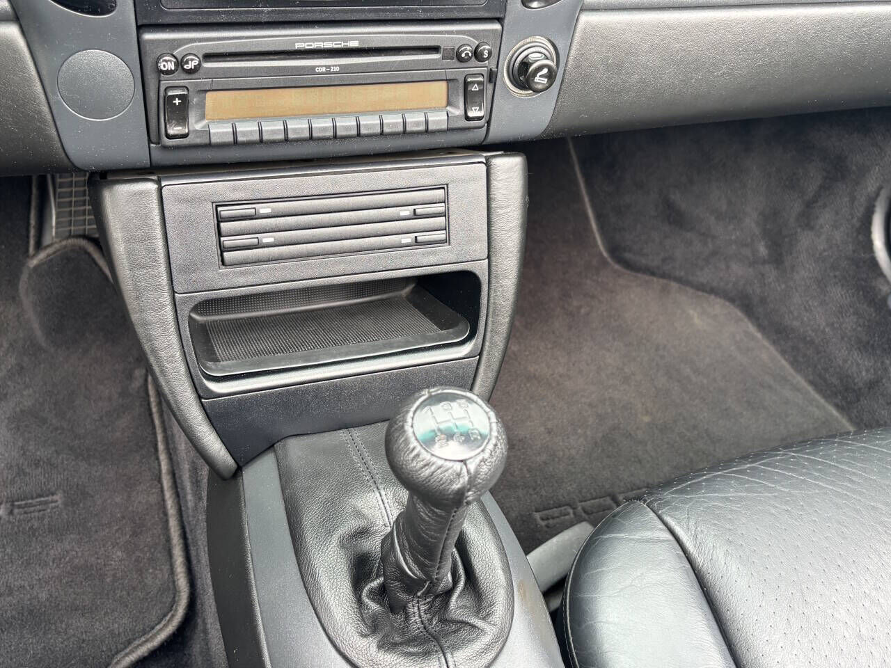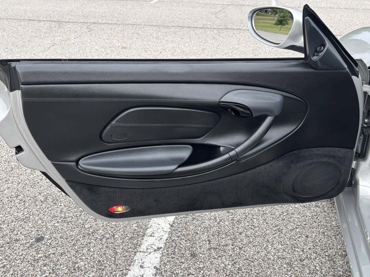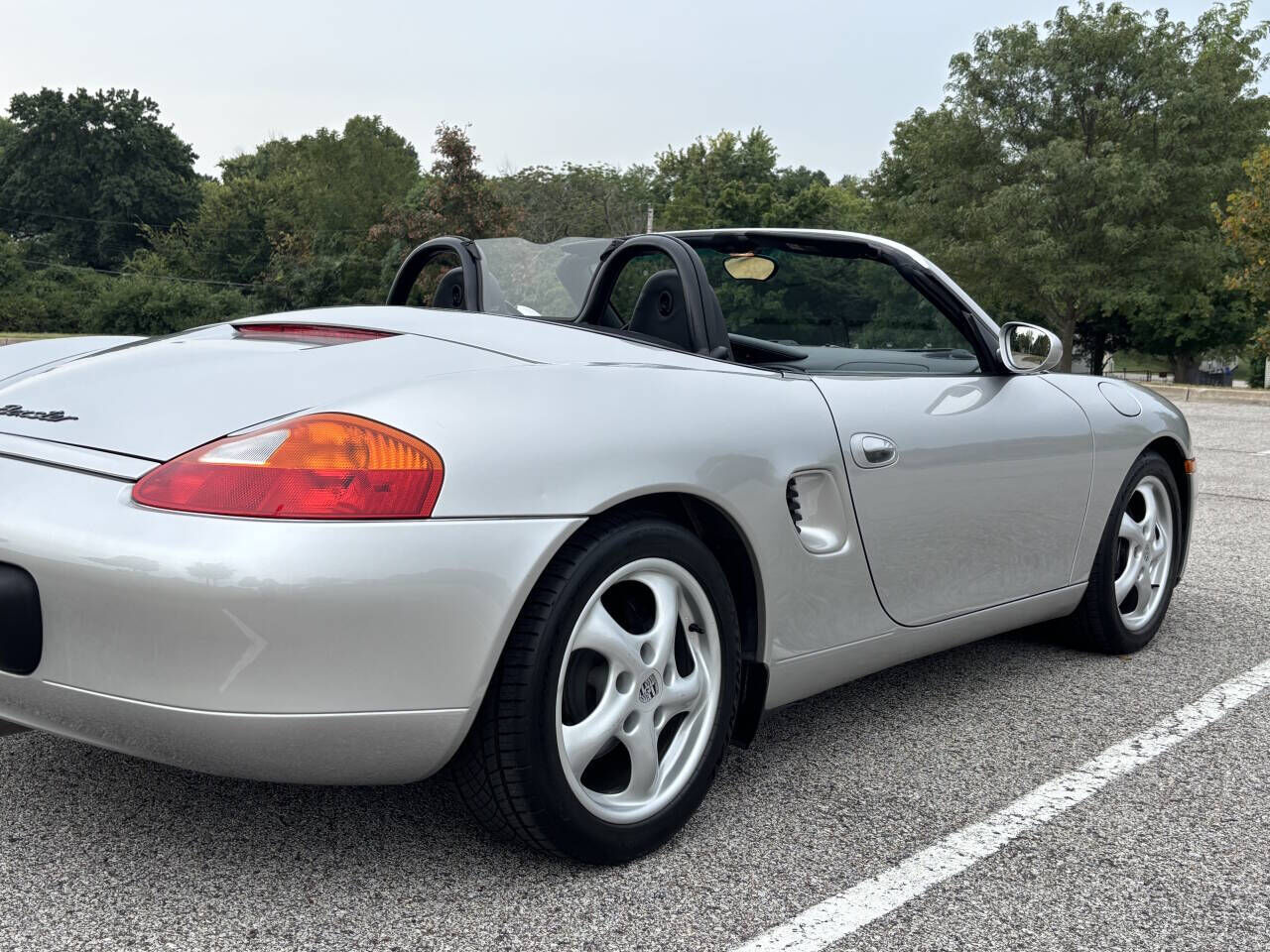 This 1998 Porsche Boxster is a two-seat, mid-engine roadster featuring a 2.5-liter, 201-hp flat-six engine and a five-speed manual transmission. Key features include a power-operated fabric convertible top with a plastic rear window and a classic int...