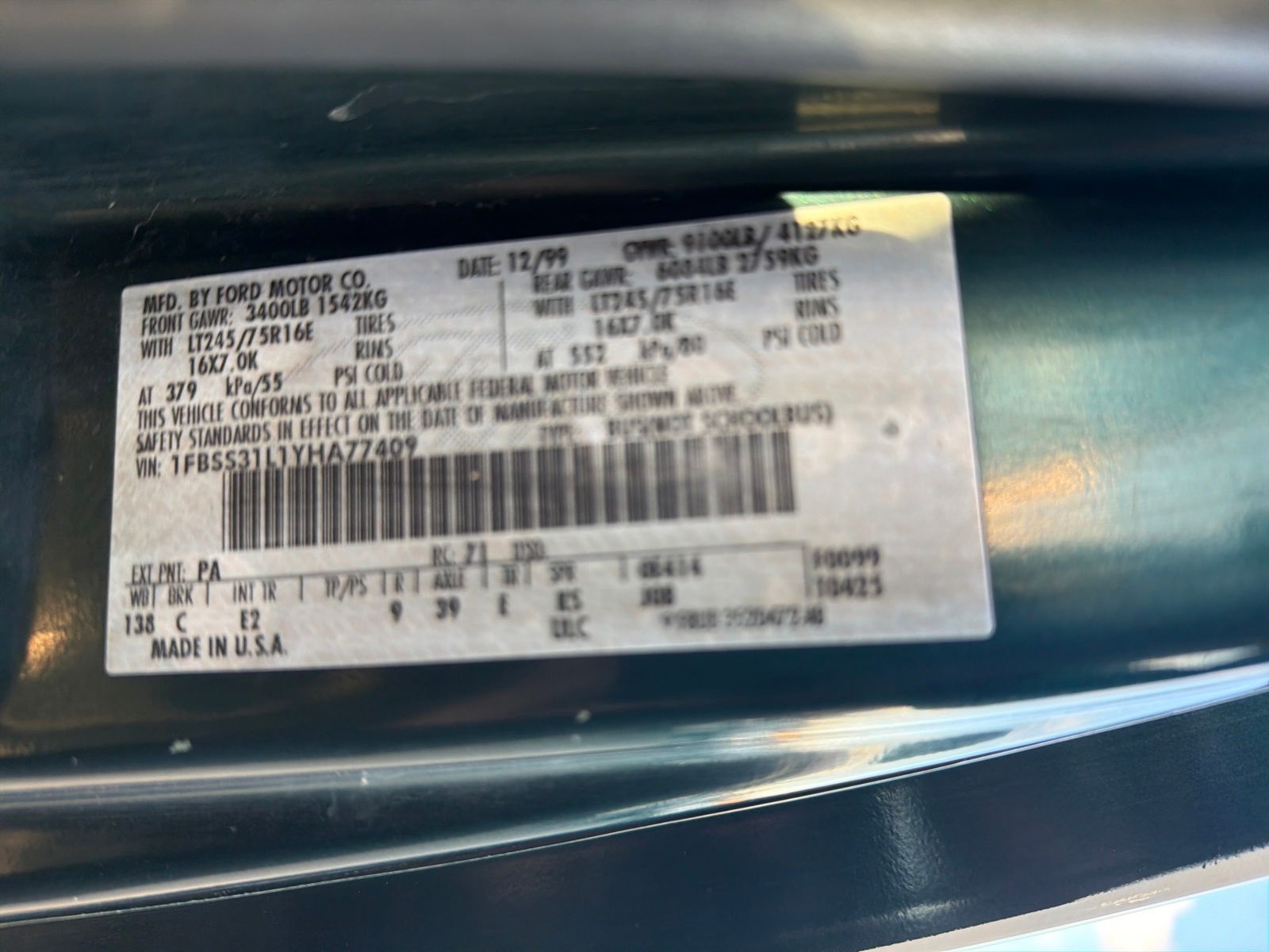 VIN 1FBSS31L1YHA77409 may have been recalled. Check full report for more information