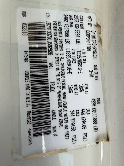 VIN 1B7MF33701J592926 may have been