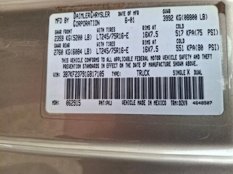 VIN 3B7KF23791G817105 may have been