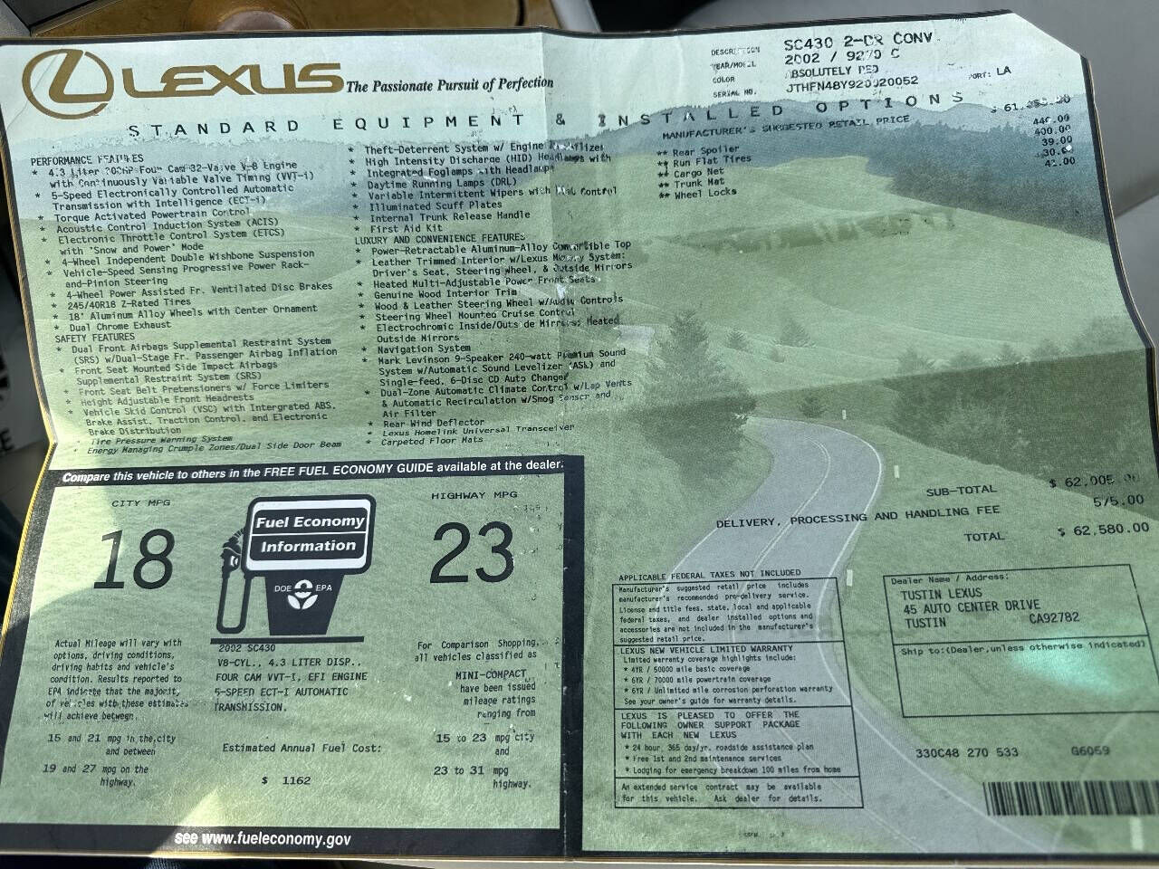 VIN JTHFN48Y920020052 may have been
