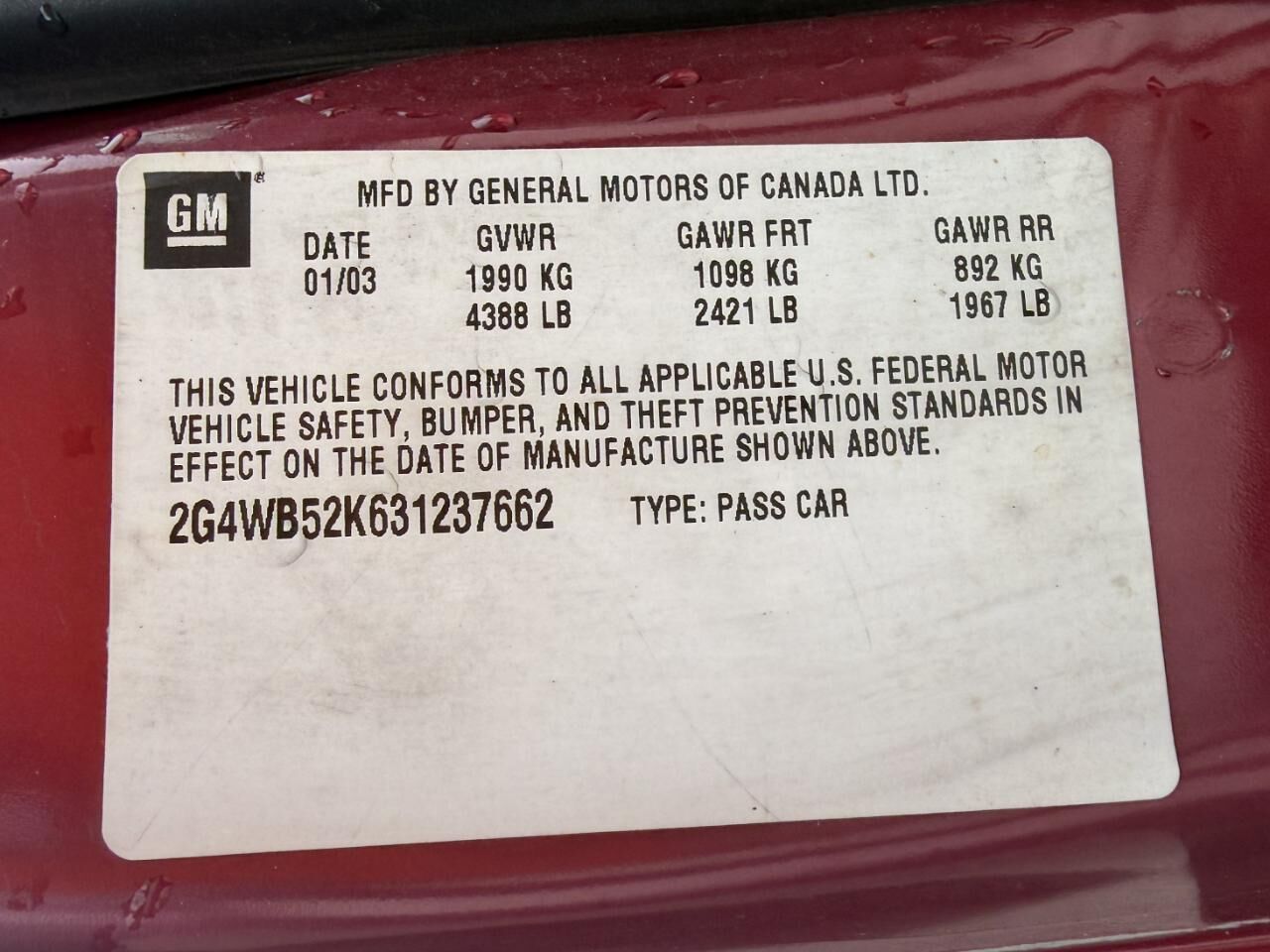 VIN 2G4WB52K631237662 may have been