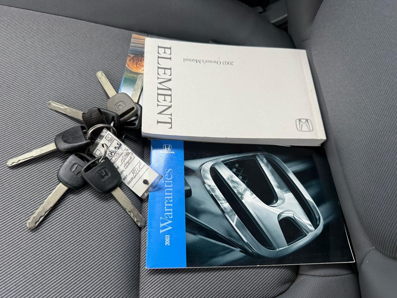 Cruise around town in this sleek and sporty Dark Blue 2003 Honda Element! With its unique clamshell tailgate and swing-wide side cargo doors, this versatile SUV is perfect for all your adventures. Equipped with a powerful 2.4L DOHC MPFI i-VTEC engine...