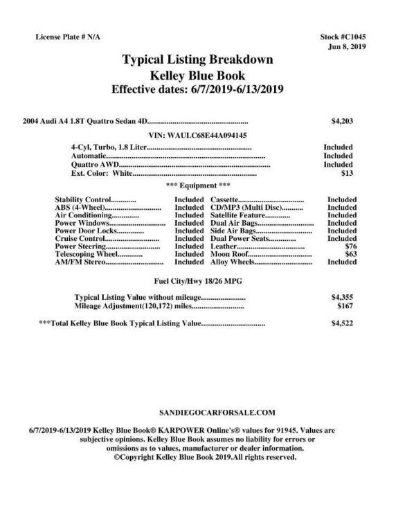 It is very clean A4; it's the fully loaded model with all the options like a sunroof, premium sound system and much more. It has a clean title, clean carfax, no accidents, just passed smog and current registration. There are no issues or problems wit...
