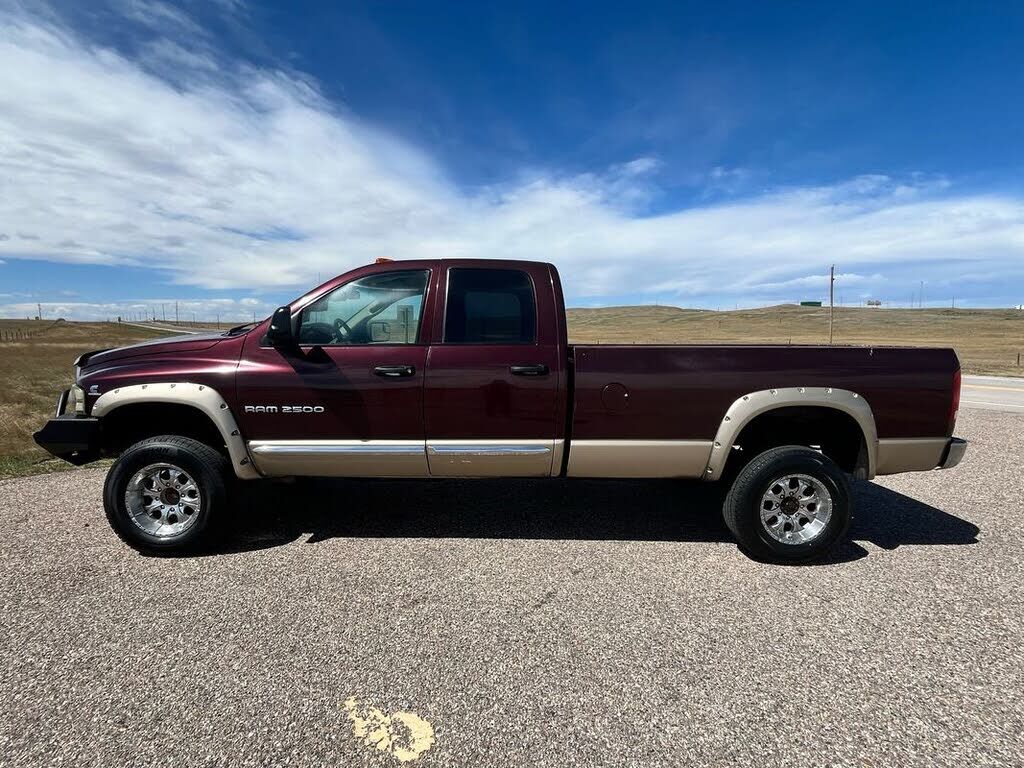 Experience the power and luxury of the 2004 Dodge Ram 2500 SLT/Laramie, a robust pickup designed for those who demand performance without compromising on comfort. With its striking Deep Molten Red Pearlcoat exterior, this Crew Cab stands out both on...