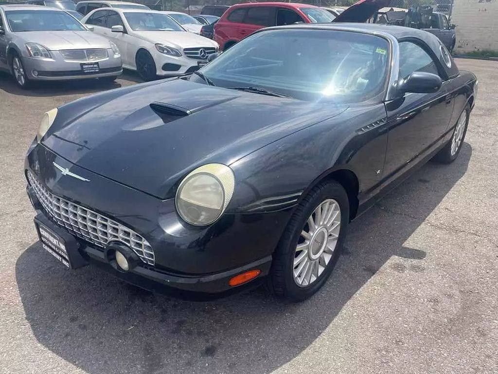 . Meet our rare 2004 Ford Thunderbird Deluxe Convertible that's sure to turn heads in Black! Motivated by a 3.9 Liter V8 that offers 280hp connected to a 5 Speed Automatic transmission. This Rear Wheel Drive convertible can earn you up to 23mpg on th...
