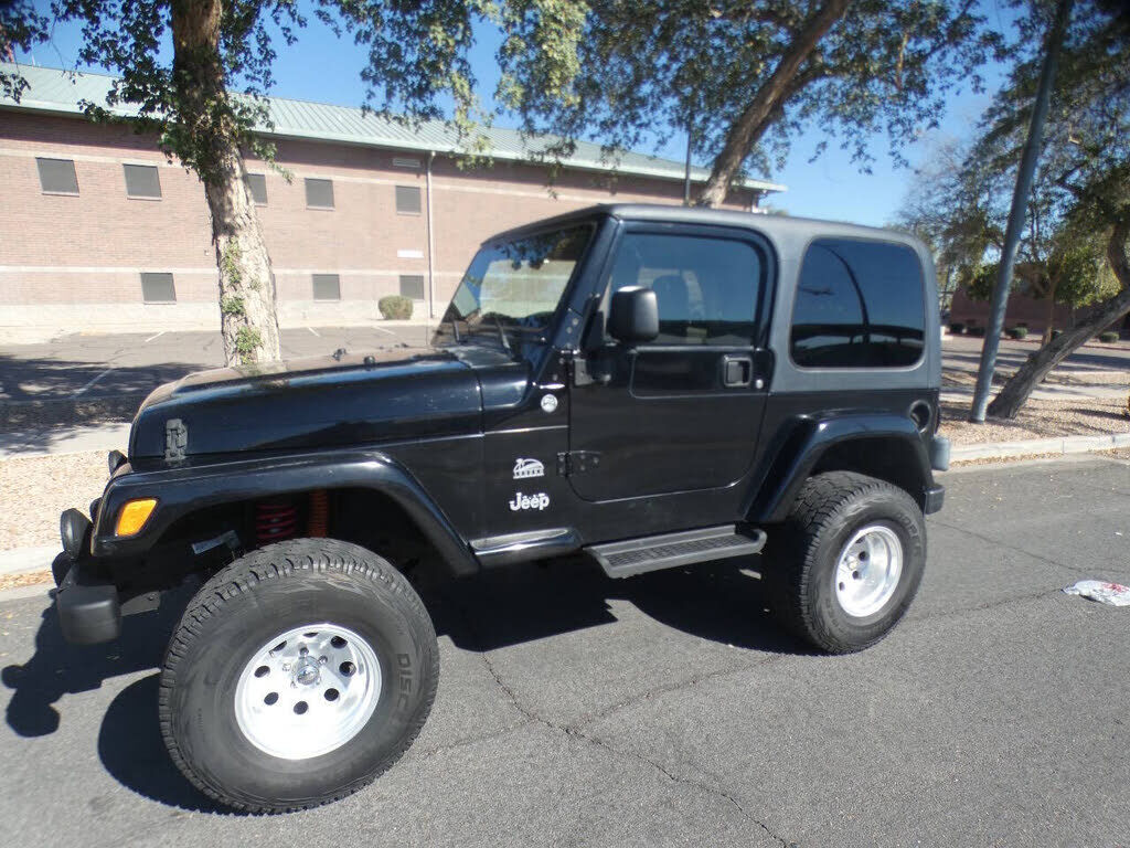 LOW MILES 99312 2004 Jeep Wrangler Sahara 4WD 2dr SUV Has a Nice Black Exterior with a Very Gray Cloth Interior, 4.0L I6 Clean Engine, 4WD, Nice Cooper All Terrain Tires with Spare on Back, Tow Hooks Front and Back, Nice Removeable Black Hard Top, Ru...