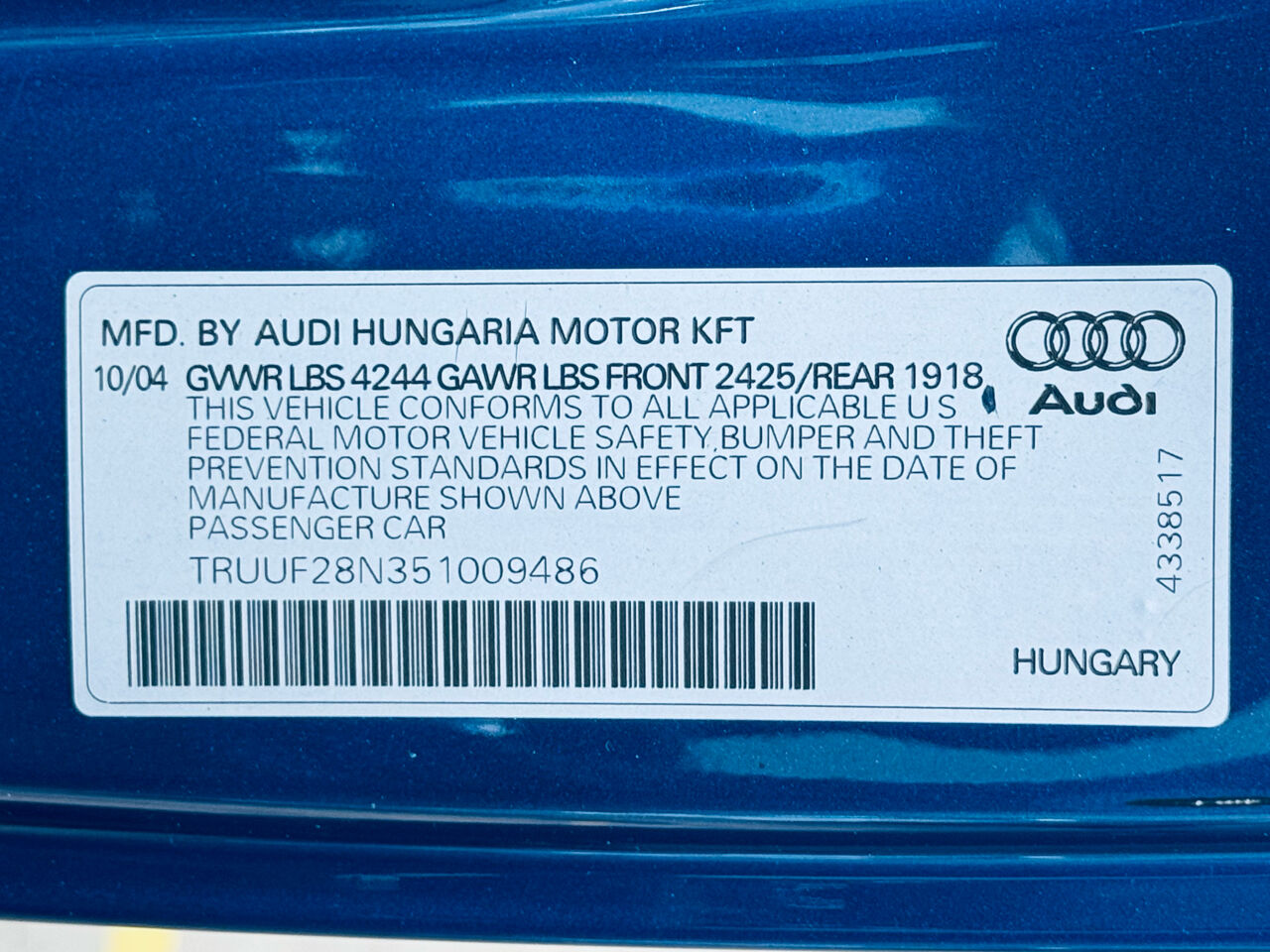VIN TRUUF28N351009486 may have been