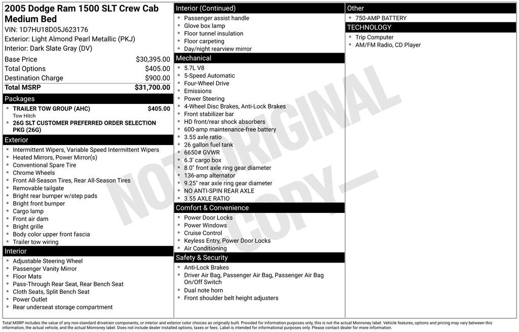 Recent Arrival! Gold 2005 Dodge Ram 1500 SLT 4WD 5-Speed Automatic HEMI Magnum 5.7L V8 SMPI HEMI Magnum 5.7L V8 SMPI, 4WD. Check out our award winning dealership! 5-star google review, drive a little save a lot. HEMI Magnum 5.7L V8 SMPI, 4WD, 17"...