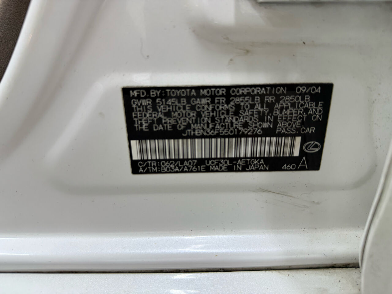 VIN JTHBN36F550179276 may have been