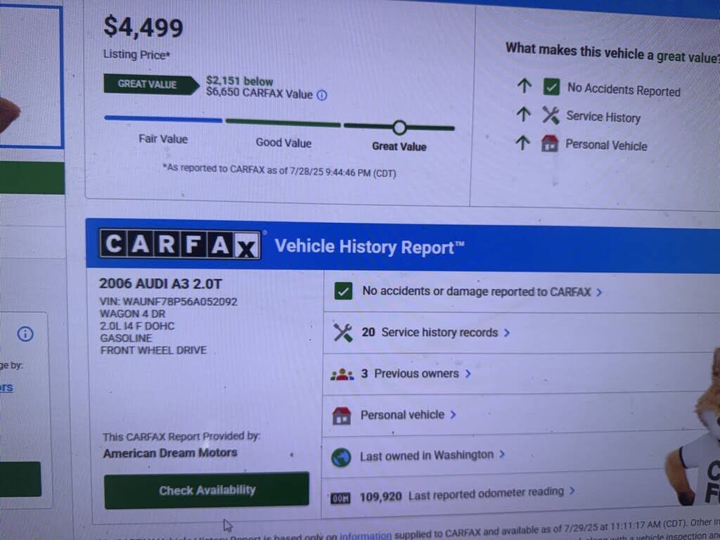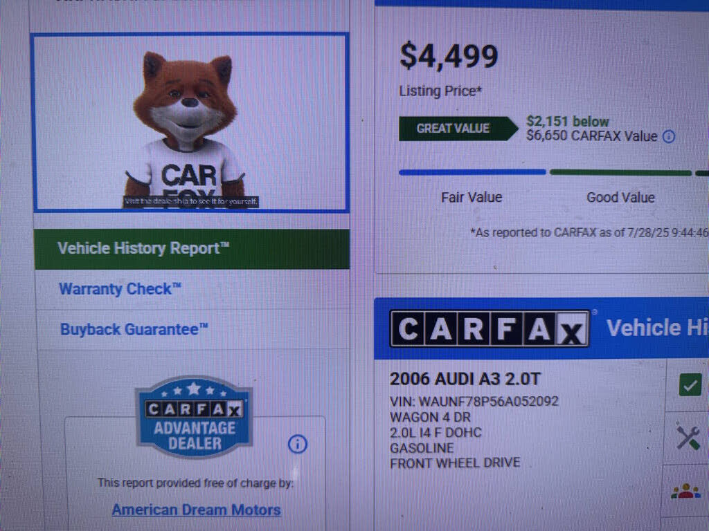 To be more confident in your used car purchase and get more information about the auto, including its accident history, insurance records, odometer readings history and other important details, we recommend you get a vehicle history report for the car prior to buying it.