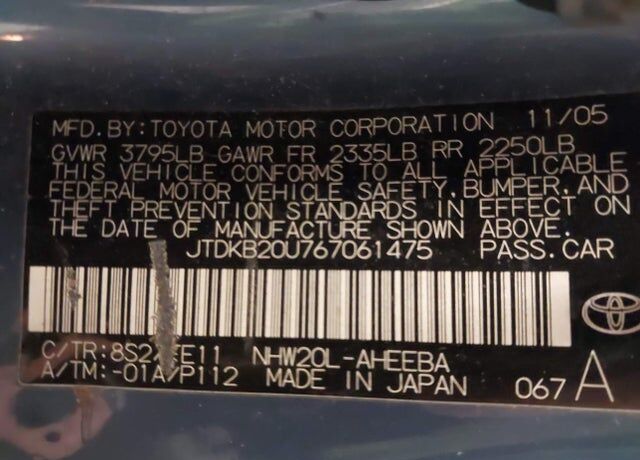 VIN JTDKB20U767061475 may have been