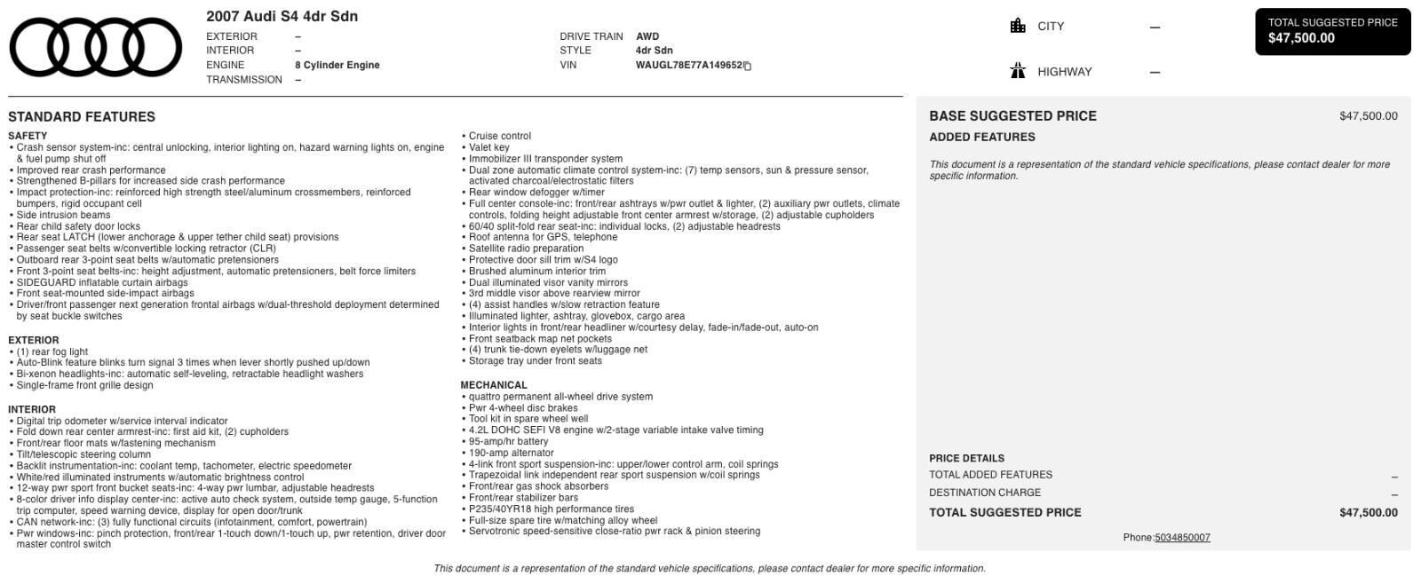 VIN WAUGL78E77A149652 may have been