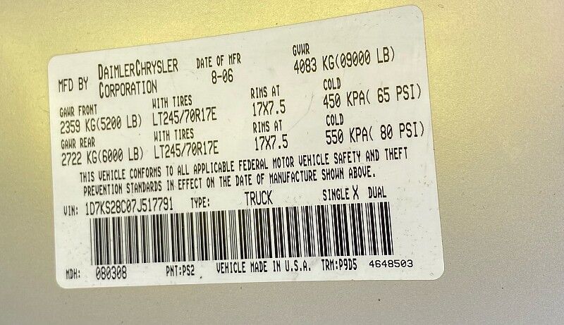 VIN 1D7KS28C07J517791 may have been