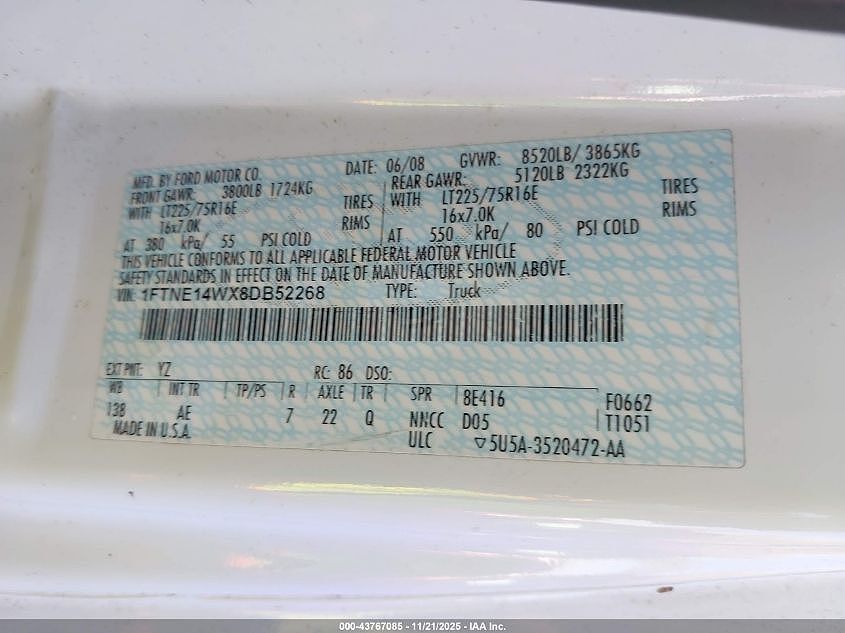 VIN 1FTNE14WX8DB52268 may have been