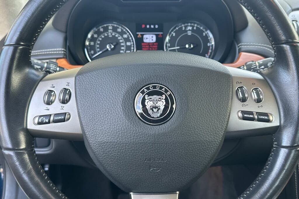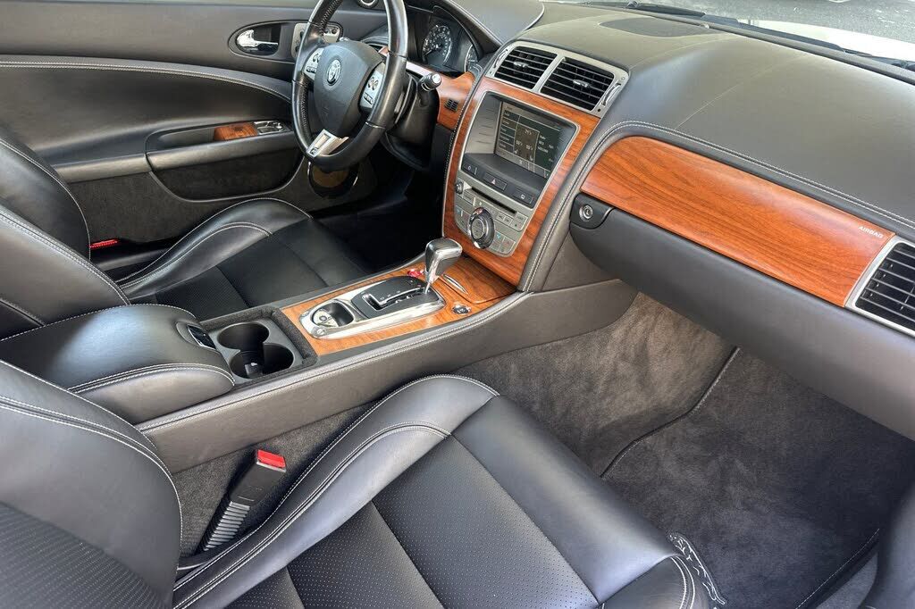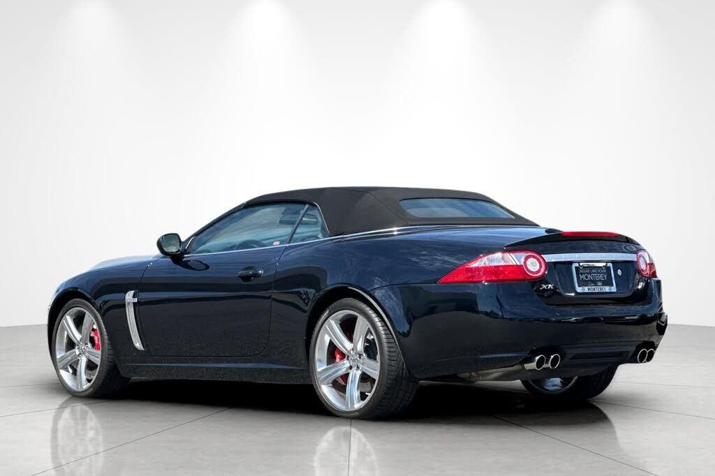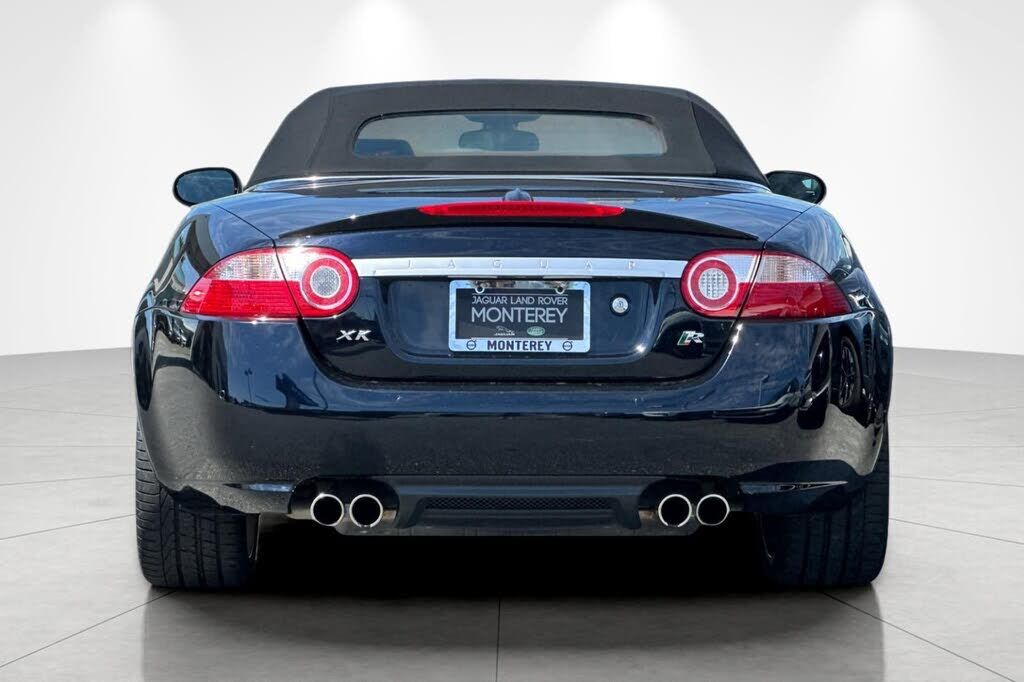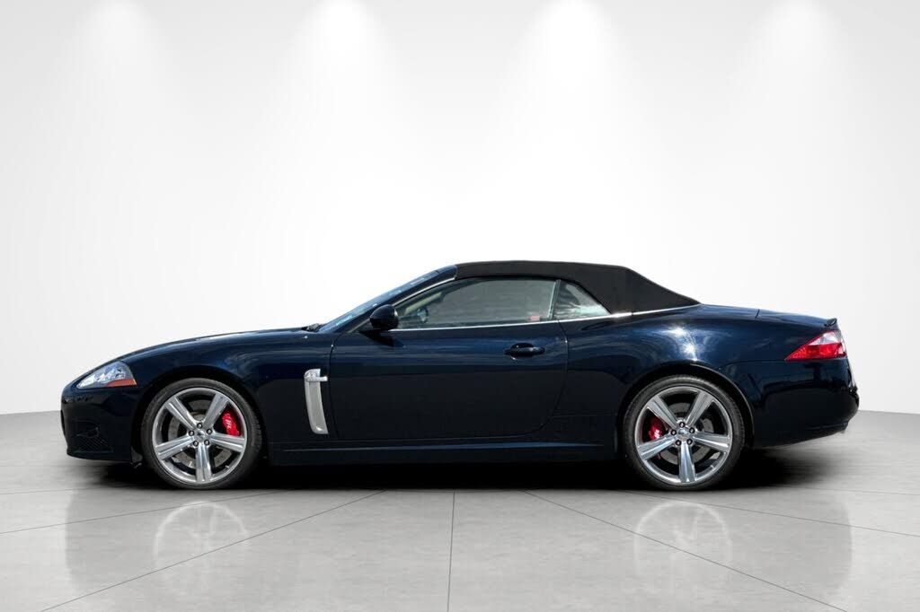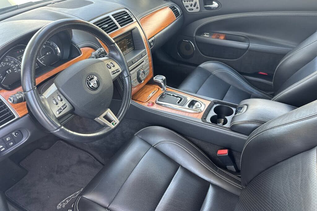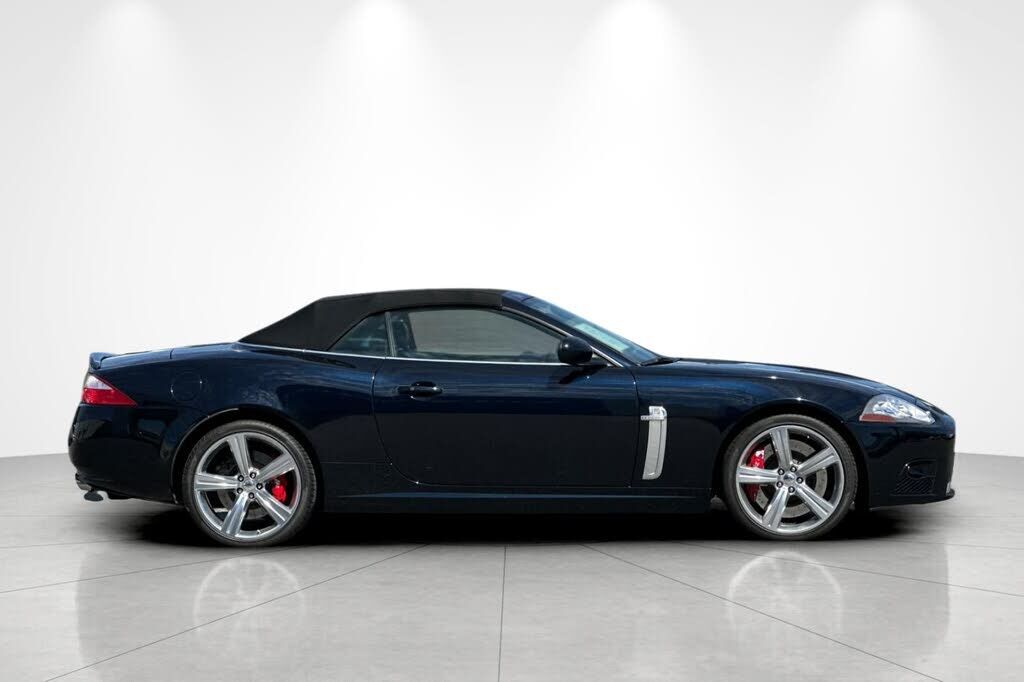 This 2008 Jaguar XKR convertible is finished in Celestial Black over Charcoal leather, and it was specified with the Portfolio Package, which added 20 Cremona alloy wheels and American Walnut wood trim. It has 9k+ miles following registration histor...