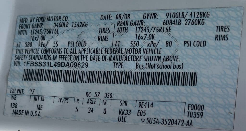 VIN 1FBSS31L49DA09629 may have been
