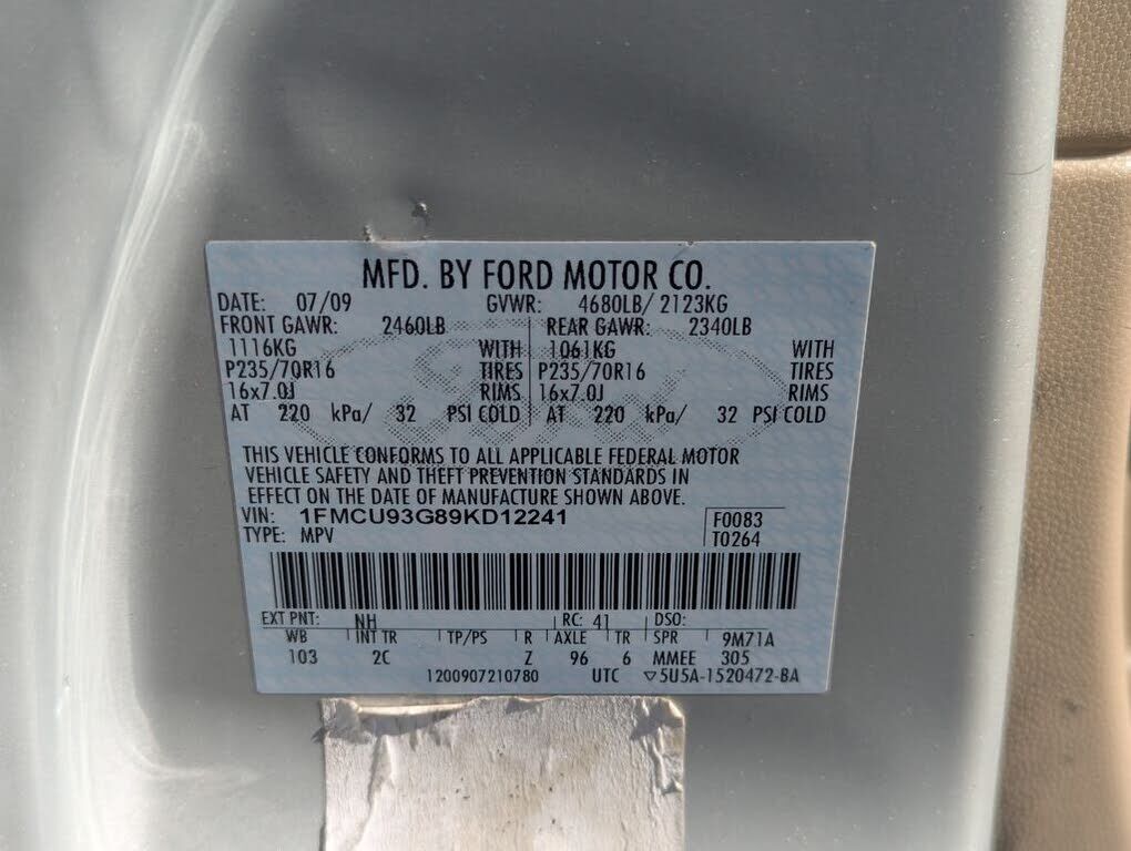 VIN 1FMCU93G89KD12241 may have been