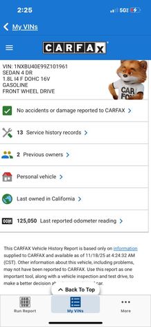 VIN 1NXBU40E99Z101961 may have been