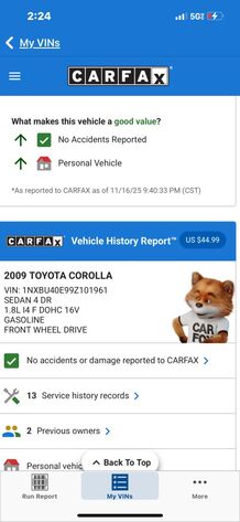 To be more confident in your used car purchase and get more information about the auto, including its accident history, insurance records, odometer readings history and other important details, we recommend you get a vehicle history report for the car prior to buying it.