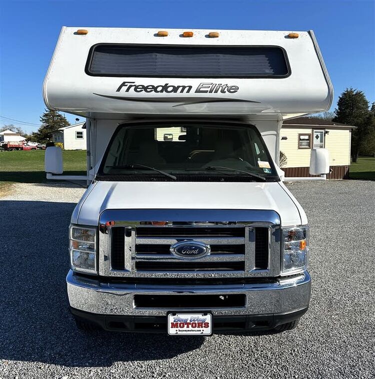 2011 FORD E350 24' FREEDOM ELITE CLASS C MOTORHOME, 6.8 V-10, AUTO, POWER WINDOWS, POWER LOCKS, CRUISE, TILT, AM/FM STEREO WITH CD PLAYER, FULL STANDUP SHOWER, TONS OF STORAGE, ICE COLD A/C, BRAND NEW AWNING, LOW STEP ENTRY DOOR, TOW PACkAGE, ONAN 40...