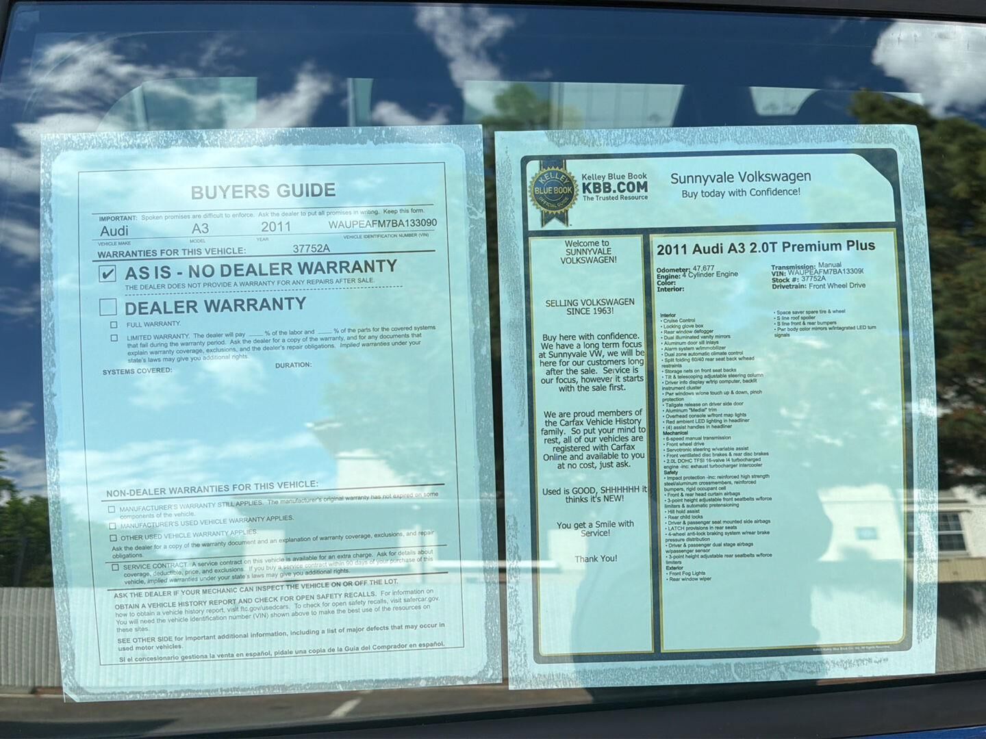 Why BUY from Sunnyvale Volkswagen? When you choose this 2011 Audi A3 2.0T Premium Plus with 47,677 miles, you are not just buying a used vehicle - you are investing in quality, reliability and peace of mind. Our clientele depend on us for Transpa...
