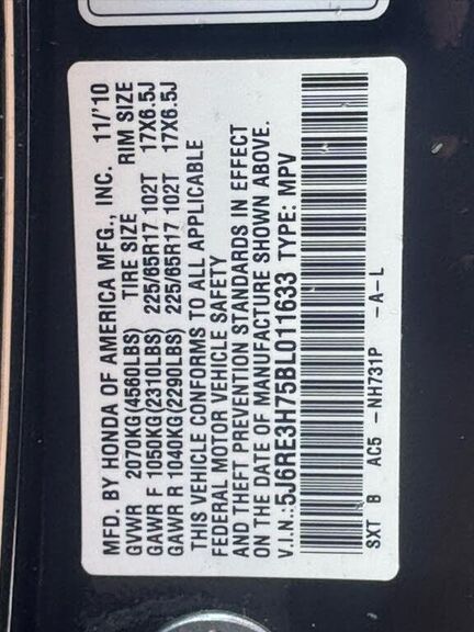 VIN 5J6RE3H75BL011633 may have been