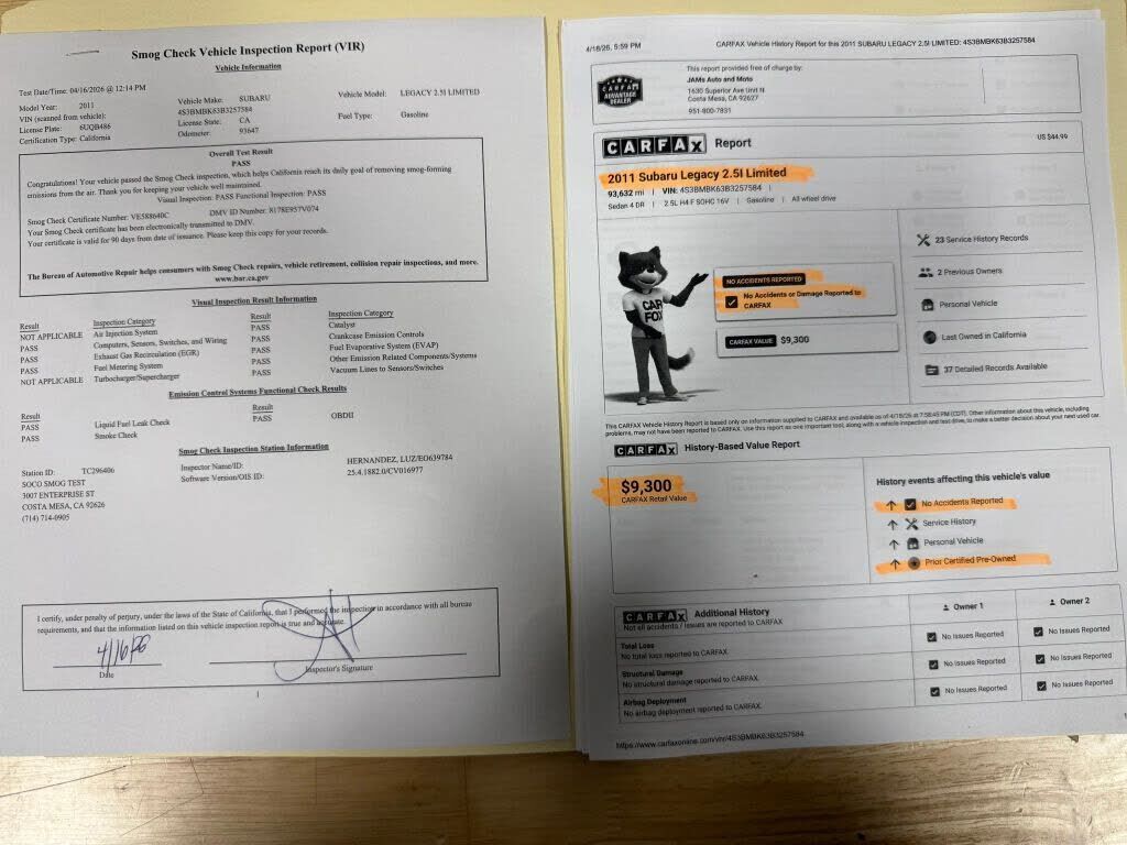 2011 Subaru Legacy Premium Plus PZEV - 90K Miles - Clean Title - AWD Sedan - Costa MesaFor sale is a well-maintained 2011 Subaru Legacy Premium Plus PZEV with only 90,000 original miles, finished in a clean color combination with a well-kept interior...