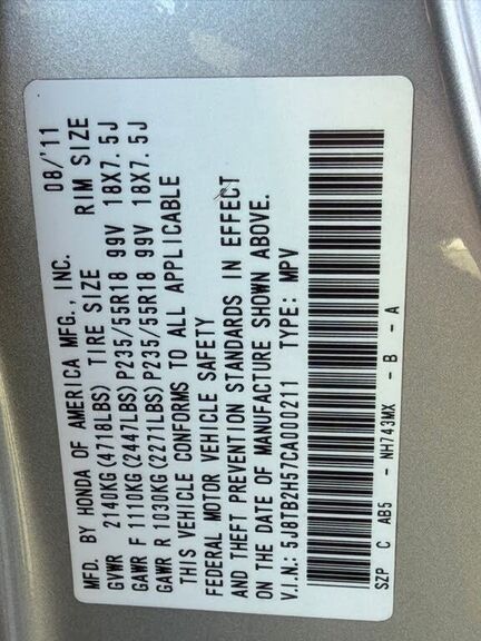 VIN 5J8TB2H57CA000211 may have been