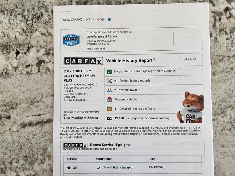 There are dozens of additional pictures, undercarriage pictures, a walk around video and a FREE copy of the Carfax report that can be seen at... autoparadiseaz.com The walk around video on our website will answer most of your questions about the o...