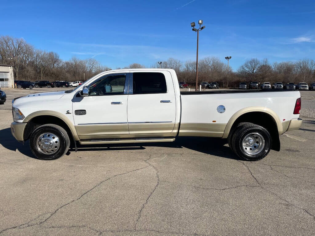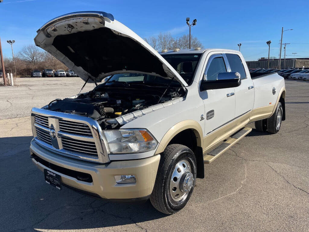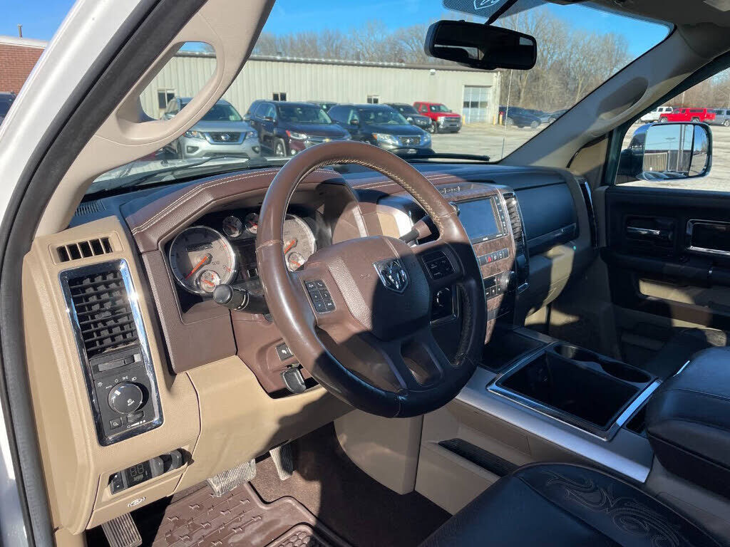 2012 RAM 3500 Laramie Longhorn 6.7L Diesel Turbo I6 4WD 1 OWNER! Has premium alloy wheels, running boards, bed liner, towing package, sunroof, leather seats, power seats, vented seats, heated seats, heated steering wheel, cruise control, hands free...