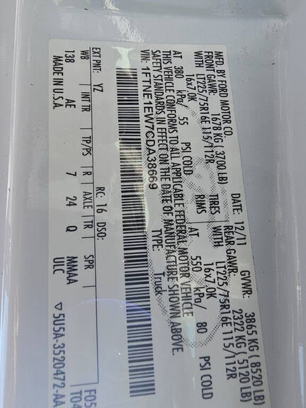 VIN 1FTNE1EW7CDA38669 may have been