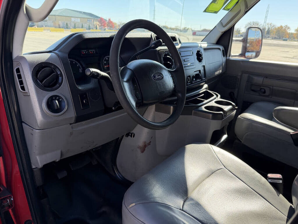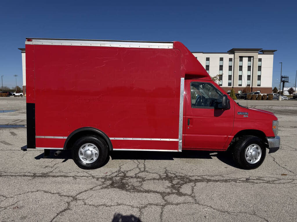 2012 Ford E-350 10ft Cutaway, 60,721 Miles, Two Owner (IL), Clean CarFax, Warranty, Vermillion Red On Gray, 5.4L V8, SRW, 5-Speed Automatic, Vinyl Bucket Seats, Climate Control with A/C, 9,900 GVWR, Aerodynamic Roof Spoiler, Cruise Control, 138WB, 4....