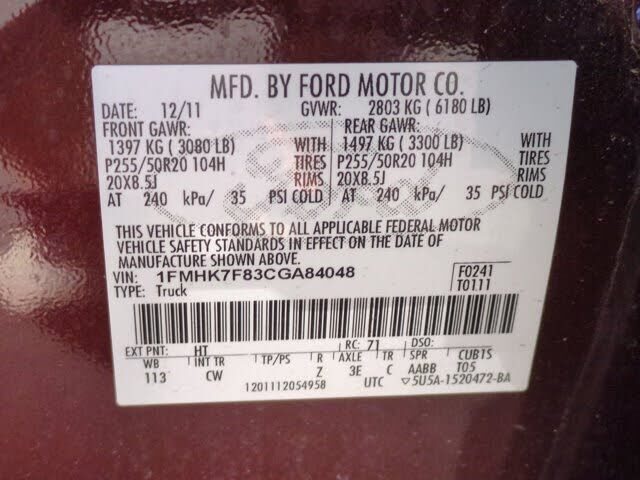 VIN 1FMHK7F83CGA84048 may have been