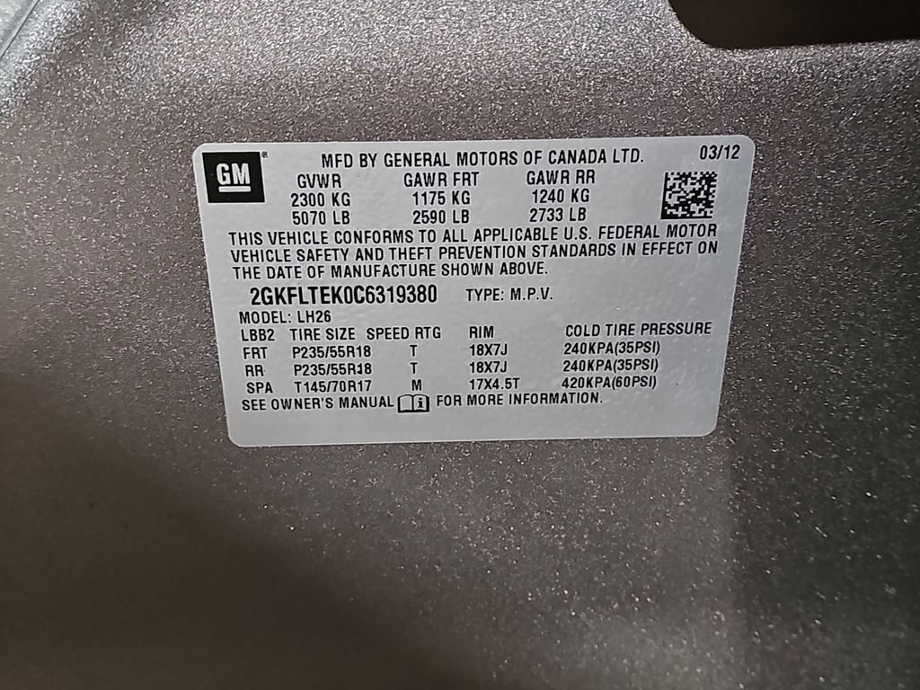 VIN 2GKFLTEK0C6319380 may have been