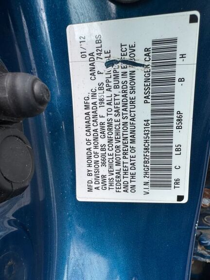 VIN 2HGFB2F58CH543164 may have been