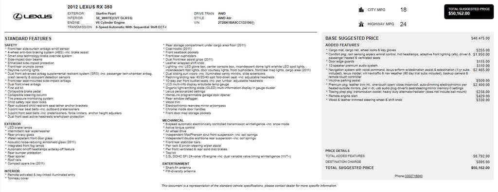 Recent Arrival! AWD, Light Gray w/Semi-Aniline Leather Seat Trim or Smooth Perforated Leather Seat Trim or Leather Seat Trim. 2012 Lexus RX 350 4D Sport Utility 3.5L V6 DOHC Dual VVT-i 24V 6-Speed Automatic with Sequential Shift ECT-i AWD Awards...