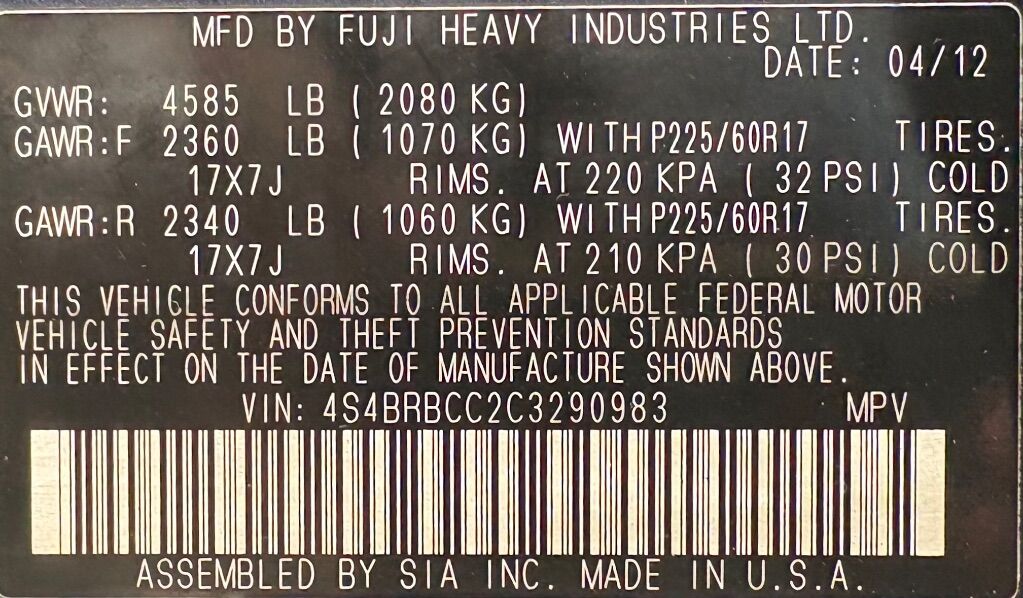 VIN 4S4BRBCC2C3290983 may have been