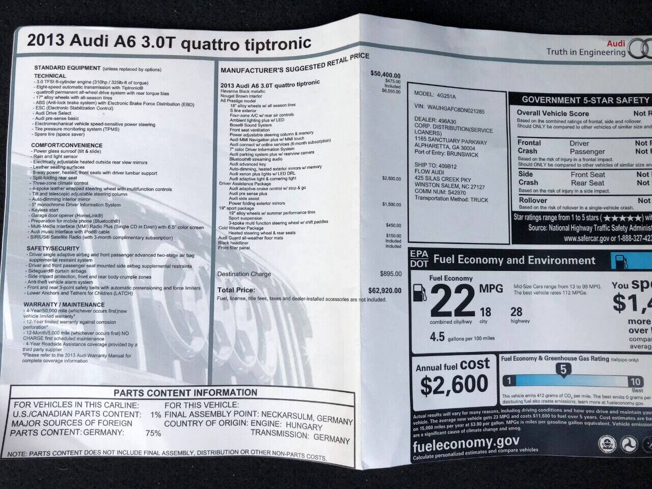 Axle Ratio - 2.85