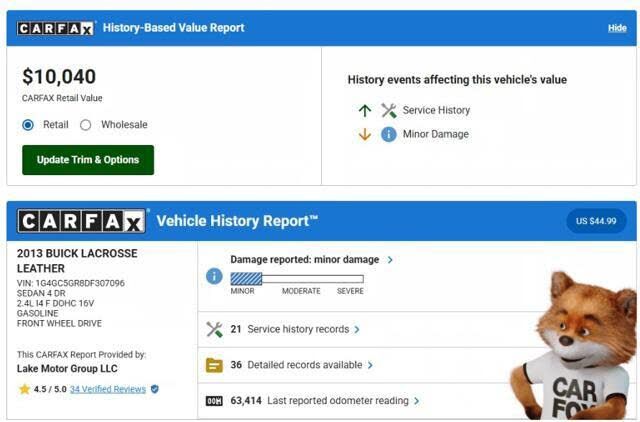 To be more confident in your used car purchase and get more information about the auto, including its accident history, insurance records, odometer readings history and other important details, we recommend you get a vehicle history report for the car prior to buying it.