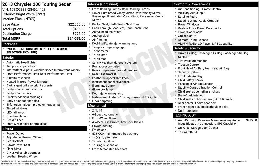 Recent Arrival! Clean CARFAX. This vehicle located at Southern of Norfolk 2747 N Military Hwy Norfolk VA (across from the airport, Black Cloth. Bright White Clearcoat 2013 Chrysler 200 Touring FWD 6-Speed Automatic 2.4L I4 PZEV 16V Dual VVT 20/31...