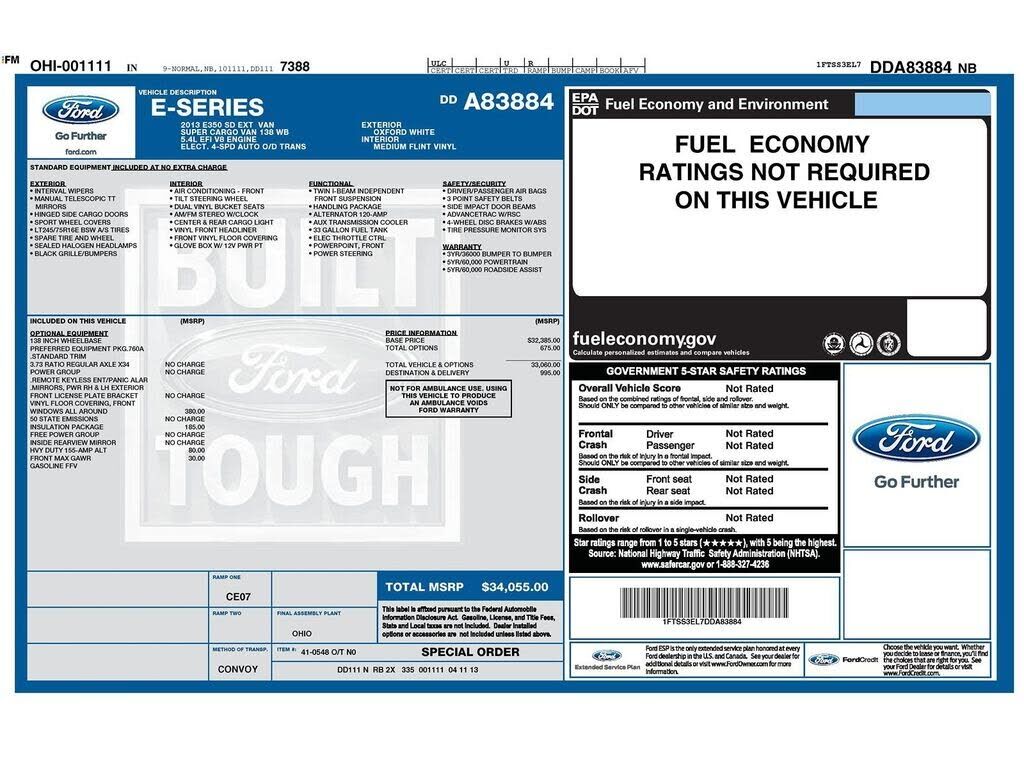 VIN 1FTSS3EL7DDA83884 may have been